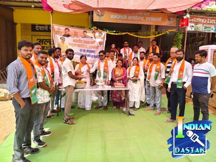 एटापल्ली (दि. 6 एप्रिल 2026): भारतीय जनता पार्टी चा 47 वा वर्धापन दिन एटापल्ली तालुका कार्यालयात मोठ्या उत्साहात, संघटनात्मक बांधिलकी आणि राष्ट्रसेवेच्या भावनेने साजरा करण्यात आला.