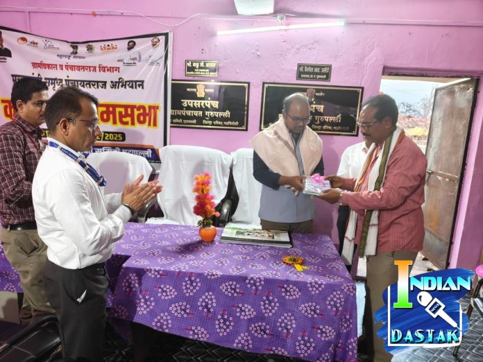 एटापल्ली : दिनांक 08 एप्रिल 2026 रोजी सुहास गाडे, मुख्य कार्यकारी अधिकारी, जिल्हा परिषद गडचिरोली यांनी गुरूपल्ली ग्रामपंचायतीस आकस्मिक भेट देत विविध विकास कामांचा सखोल आढावा घेतला. या अचानक भेटीमुळे ग्रामपंचायत प्रशासनात चैतन्य निर्माण होऊन कामकाजाला गती मिळाल्याचे चित्र दिसून आले.