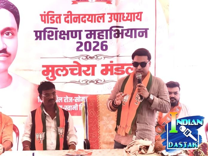 *मुलचेरा:-* येथील स्वामी विवेकानंद छात्रावास येथे पंडित दीनदयाळ उपाध्याय प्रशिक्षण महाभियान 2026 अंतर्गत भव्य प्रशिक्षण कार्यक्रम उत्साहात पार पडला.या कार्यक्रमाला अहेरी इस्टेटचे राजे तथा माजी राज्यमंत्री राजे अम्ब्रीशराव महाराज मुख्य मार्गदर्शक म्हणून उपस्थित राहून कार्यकर्त्यांना मोलाचे मार्गदर्शन केले.