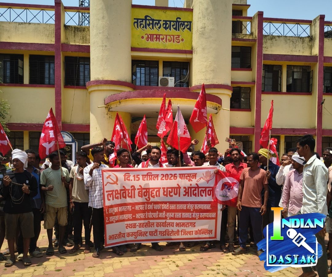 एटापल्ली : भामरागड तालुक्यातील भटपार परिसरातील रस्त्यांची अत्यंत दयनीय अवस्था तसेच मूलभूत सुविधांच्या अभावाविरोधात भारतीय कम्युनिस्ट पक्ष (भाकपा) गडचिरोली जिल्ह्याच्या वतीने दिनांक १५ एप्रिल २०२६ पासून बेमुद्दत लक्षवेधी आंदोलन सुरू करण्यात आले आहे. नागरिकांच्या दैनंदिन जीवनावर परिणाम करणाऱ्या या गंभीर समस्यांकडे प्रशासनाचे लक्ष वेधण्यासाठी हे आंदोलन उभारण्यात आले आहे.