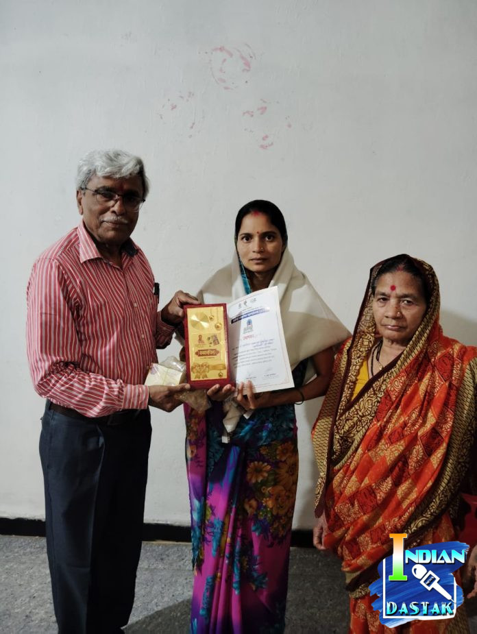 पदश्री डॉ.परशुराम खुणे यांच्या हस्ते संगीता ठलाल यांचा सत्कार.