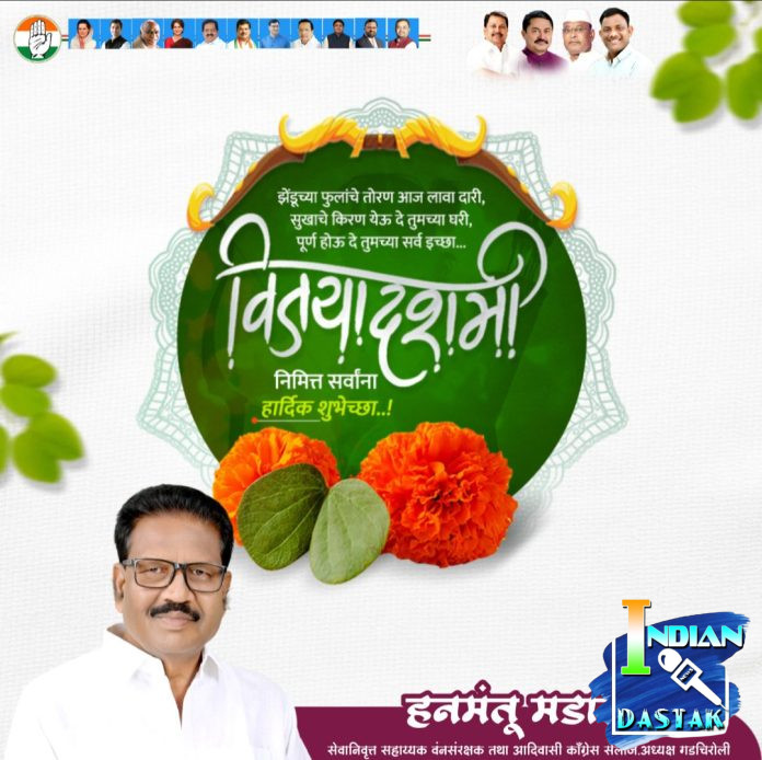 अहेरीसमस्त जनतेला दसरा,विजयादशमीच्या हार्दिक शुभेच्छाBy Indian Dastak - October 12, 202465ShareFacebookTwitterWhatsApp समस्त जनतेला दसरा,विजयादशमीच्या हार्दिक शुभेच्छा