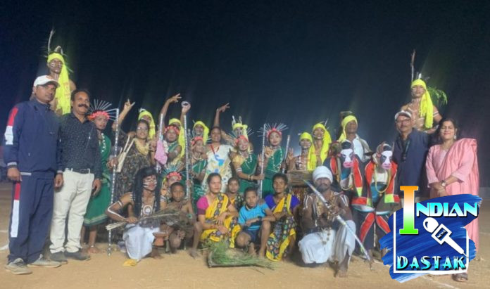 एटापल्ली: सदर कार्यक्रमामध्ये प्रकल्प -भामरागड मार्फत आदिवासी रेला नृत्य सादरीकरण करण्यात आले. नृत्यांमध्ये आदिवासी जीवन पध्दती,पारंपारिक शेती,रिवाज व त्यांच्या सुख दुःखावर आधारीत स्क्रिप्ट होती.रसिक वर्गाला मंत्रमुग्ध व डोळ्याचे पारणे फेडणारे सादरीकरण पाहून प्रेक्षक,निरीक्षक व अधिकारी वर्गांनी उभे राहून सहभागी विद्यार्थ्यांचे अभिनंदन केले.सदर नृत्य चा प्रथम क्रमांक मिळाला आहे राज्य स्तरावरील स्पर्धेत निवड झालेली आहे यशस्वीतेसाठी भगवंतराव माध्यमिकआश्रमशाळा तथा कनिष्ट महाविद्यालयाचे प्राचार्य धनंजय पोटदुखे,सहाय्यक शिक्षिका प्रा.सविता पोटदुखे,प्रा.सौ.झिलपे मॅडम व सर्व कर्मचारीवृंदानी सहकार्य केले.माजी कॅबीनेट मंत्री व आमदार मा. धर्मराव बाबा आत्राम साहेब व मा.सौ.भाग्यश्री रुतुराज हलगेकर मॅडम व संस्थेचे पदाधिकाऱ्यांनी अभिनंदन केले आहे.