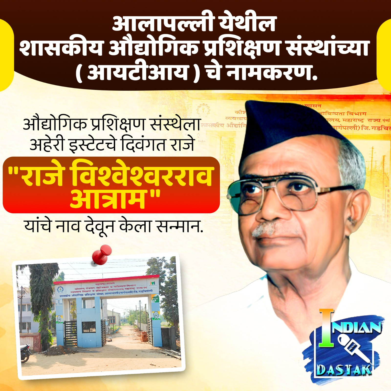 अहेरी इस्टेटचे दिवंगत राजे,माजी खासदार,शिक्षण महर्षी,राजे विश्वेश्वरराव महाराज आत्राम यांनी आपल्या गडचिरोली जिल्ह्यातील मागासलेला क्षेत्र विकासाच्या प्रवाहात आणण्यासाठी आपले आयुष्य खर्ची पाडले.धर्मराव शिक्षण मंडळाची स्थापना करत संपूर्ण जिल्ह्यात शिक्षणाच जाळ पसरवलं आणि आपला समाज शिक्षित होऊन विकासाच्या प्रवाहात आला पाहिजे यासाठी त्यांनी संपूर्ण जीवन समर्पित केलं.त्यांचं राजकीय,सामाजिक,शैक्षणिक क्षेत्रात मोलाचं योगदान आहे.आज महाराष्ट्र राज्याने त्यांच्या कार्याची दखल घेत आलापल्ली येथील शासकीय औद्योगिक प्रशिक्षण संस्थाला नाव देत त्यांच्या सम्मान केला.आज ही गडचिरोली जिल्ह्यासाठी गौरवाची बाब आहे.!