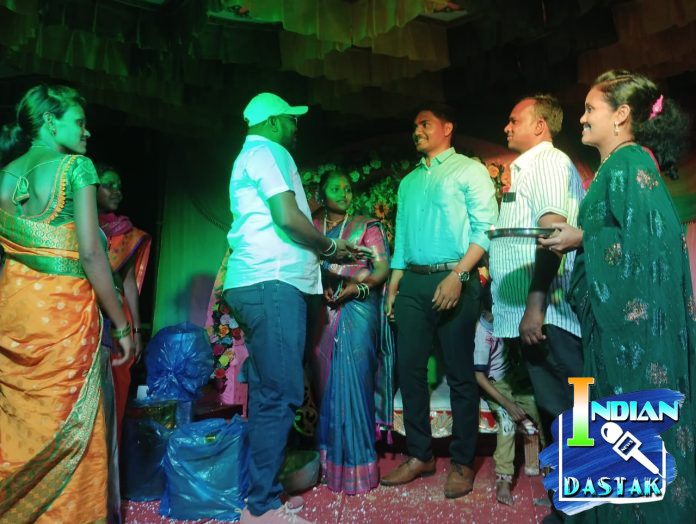 लग्न सोहळ्याच्या स्वागत समारोह कार्यक्रमास शिवसेना शिंदे गट पक्षाचे अहेरी विधानसभा प्रमुख संदीपभाऊ कोरेत यांनी उपस्थित राहून नवं वधु वरास भेटवस्तू देऊन पुढील संसारिक जीवनास शुभाशीर्वाद दिले.