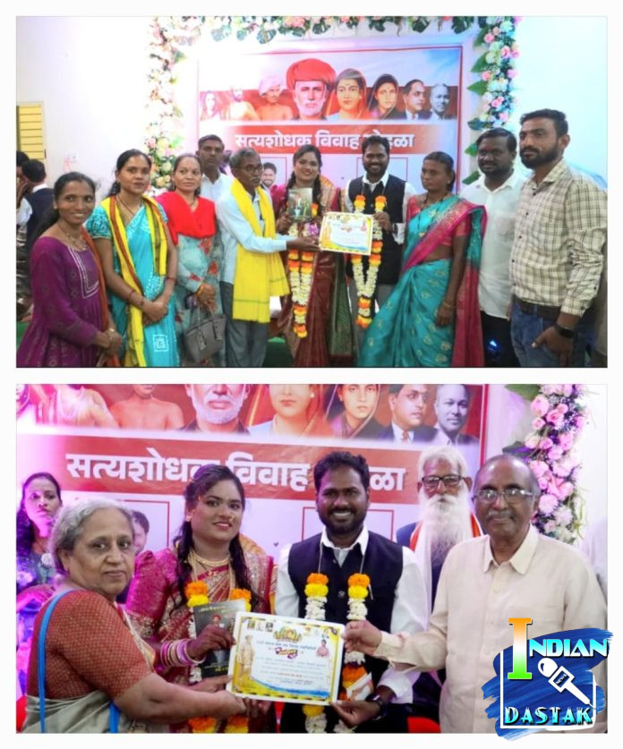 गडचिरोली :- भारतीय संविधानातील समता, स्वातंत्र्य, बंधुता आणि वैज्ञानिक दृष्टिकोन या मूलभूत मूल्यांना साक्षात उतरवणारा सत्यशोधक विवाह सोहळा ३० जून २०२५ रोजी गडचिरोलीच्या सेमाना बायपास रोडवरील सृष्टी सेलिब्रेशन हॉल येथे अत्यंत साधेपणाने, पण वैचारिक तेजाने पार पडला. सीमा बाजीराव मडावी आणि सतिश भैय्याजी कुसराम या नवदाम्पत्याने कोणताही धार्मिक विधी, कर्मकांड, पुजारी, देवपूजा वा हुंडा न घेता, फुले-आंबेडकरी विचारधारेशी बांधिलकी जपत परस्पर सन्मान, समता आणि सामाजिक न्यायाच्या मूल्यांवर आधारित विवाह केला. विवाह विधीचे संचालन सामाजिक कार्यकर्ते सुनिल कावळे यांनी केले. विवाह प्रमाणपत्र ‘आम्ही आमच्या आरोग्यासाठी’ संस्थेचे संचालक डॉ. सतीश गोगुलवार आणि शुभदा देशमुख यांच्या हस्ते प्रदान करण्यात आले.