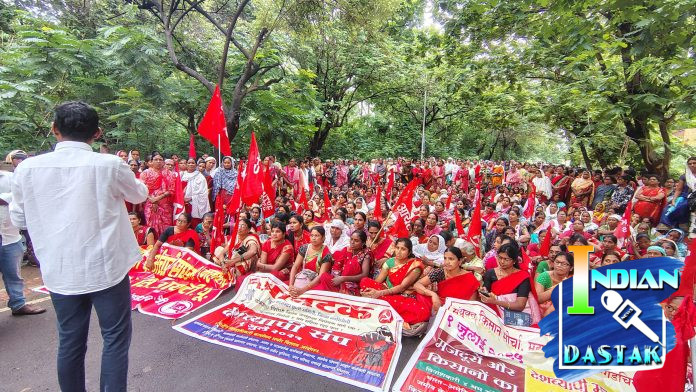 मुसळधार पावसामुळे जिल्ह्यात **21 प्रमुख रस्ते बंद** असताना देखील आंदोलनस्थळी **महिला कर्मचारी, शेतकरी, शेतमजूर, सफाई कामगार, अंगणवाडी व आशा वर्कर्स मोठ्या संख्येने उपस्थित** राहिल्या. यावेळी “अन्याय, शोषण आणि खाजगीकरणाच्या विरोधात” जोरदार घोषणा देण्यात आल्या.