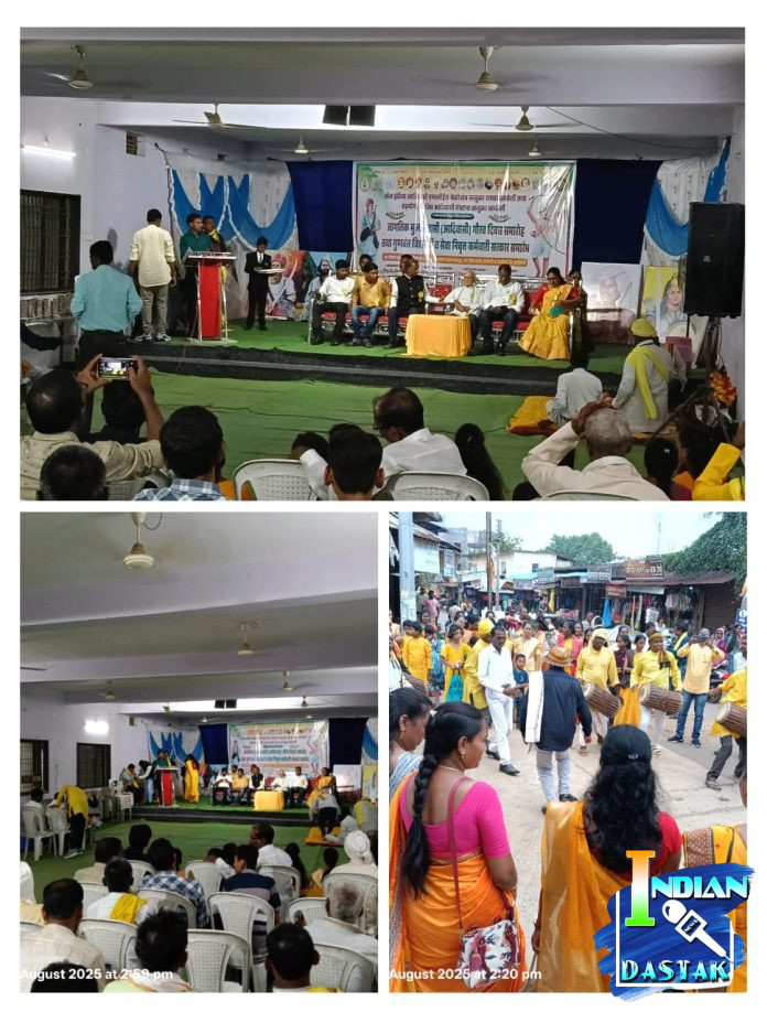 चामोर्शी – येथे जागतिक आदिवासी दिनाच्या निमित्ताने सर्वप्रथम सकाळी विधीवत पूजा करून सप्तरंगी झेंडा पडकवण्यात आला.त्यानंतर चामोर्शी शहरातील मुख्य रस्त्यावरुन आदिवासी संस्कृतीचे वाद्य,संगीत व वेशभूषा परिधान करून रॅली काढण्यात आले आणि सावतेली सभागृहात कार्यक्रमाचे आयोजन करण्यात आले कार्यक्रमाचे अध्यक्ष विलास कुळसंगे सेवा निवृत्त उपव्यवस्थापक महावितरण प्रमुख पाहुणे रेवणनाथ सेडमाके समाज सेवक, देवराव आलाम सेवानिवृत्त मुख्याध्यापक , रामचंद्र कोडापे,संध्या तिम्मा सदर कार्यक्रमात आदिवासी समाजगाता, संस्कृती, शिक्षण व अडचणी याबाबत सविस्तर मान्यवरांनी कार्यक्रमास उपस्थित समाज बांधवांना मार्गदर्शन केले .