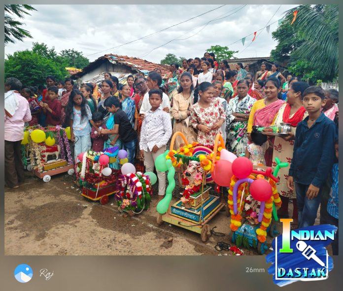 सावली :- जिबगांव परंपरेनुसार यावर्षी सुद्धा तान्हापोळा महोत्सव मोठ्या उत्साहात पार पडला, विदर्भातील हा एक खास सण आहे, जो लहान मुलांच्या हौसेसाठी असतो. या दिवशी लहान मुले लाकडी किंवा मातीचे छोटे बैल बनऊन त्यांची मिरवणूक काढतात, तर मोठे शेतकरी पारंपरिक पद्धतीने बैलांची पूजा करतात. हा सण बैलांप्रती कृतज्ञता व्यक्त करण्यासाठी साजरा केला जातो, जो शेतीमधील त्यांच्या महत्त्वाच्या योगदानाचा उत्सव आहे,आज जिबगांव युवा मित्रपरीवार जिबगांव तर्फे साजरा करण्यात आला.