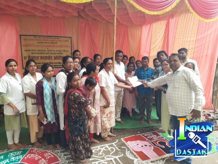 सेवेत नियमित केलेल्या आदेशाची अंमलबजावणीसाठी आरोग्य कर्मचाऱ्यांचे बेमुदत आंदोलन.