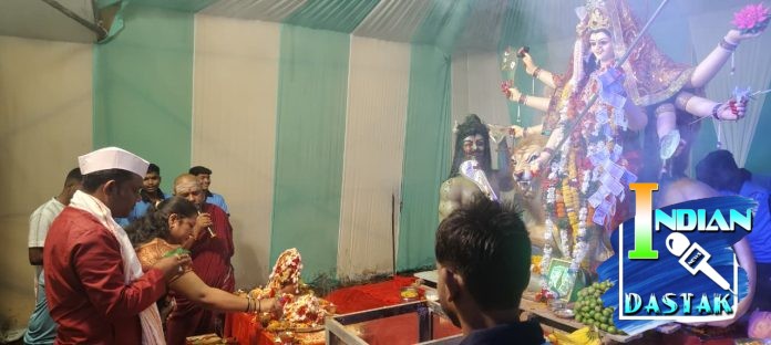 महाराष्ट्र प्रदेश काँग्रेस कमिटीचे महासचिव व माजी जि.प.अध्यक्ष तथा विद्यमान संचालक मा.श्री.अजयभाऊ कंकडालवार त्यांची अर्धांगिनी काँग्रेसचे नेत्या तथा अहेरी पंचायत समितीचे माजी उपसभापती सौ.सोनालीताई अजय कंकडालवार यांची आयोजित महाआरती व महाप्रसाद कार्यक्रमला उपस्थित दर्शवून माँ दुर्गा मातेची विधिवात पूजा अर्चना करून दर्शन घेतले.तसेच ठिकाणी महाप्रसाद कार्यक्रम असून उपस्थित परिसरातील नागरिक व भाविकांना कंकडालवार दामपात्यांनी महाप्रसाद वितरण करण्यात आली आहे.